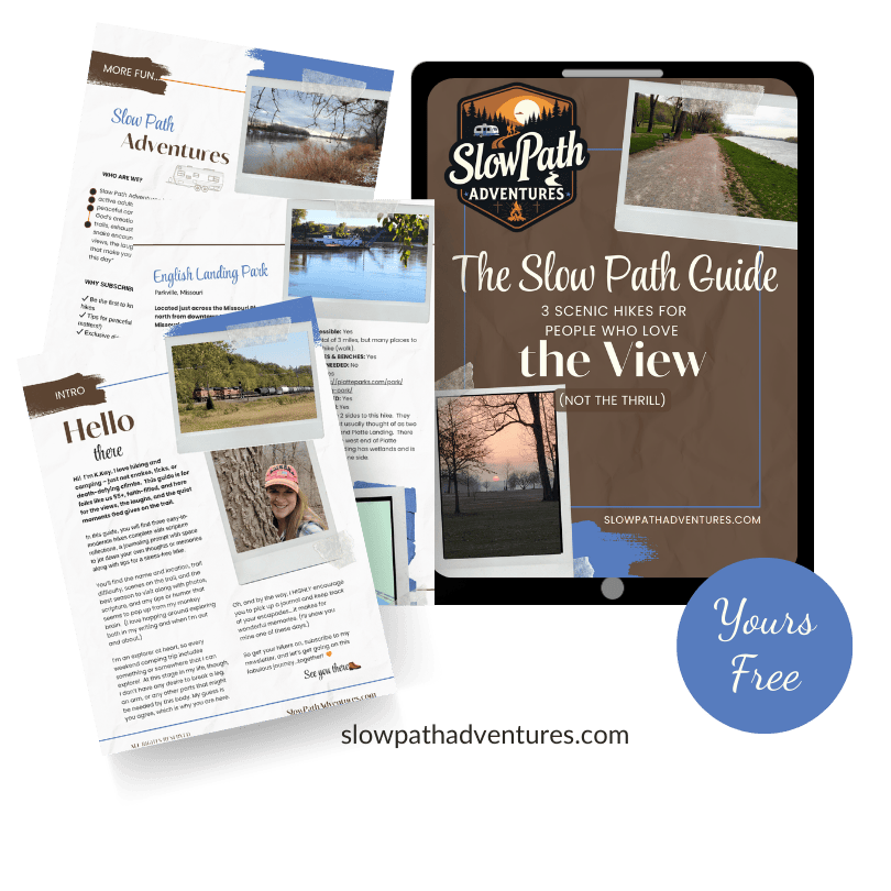 "Hi! I’m K.Kay, the voice behind Slow Path Adventures. I’ve spent the last 12 years exploring Missouri’s trails and state parks—88 parks and countless hidden gems. Every photo you see here? I’ve taken it. Every tip? Learned from experience (sometimes the hard way!)."